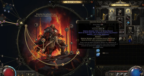 Originally, the build used Eternal Rage to generate rage per second, but with the Ember Fuselade engine, this was replaced: